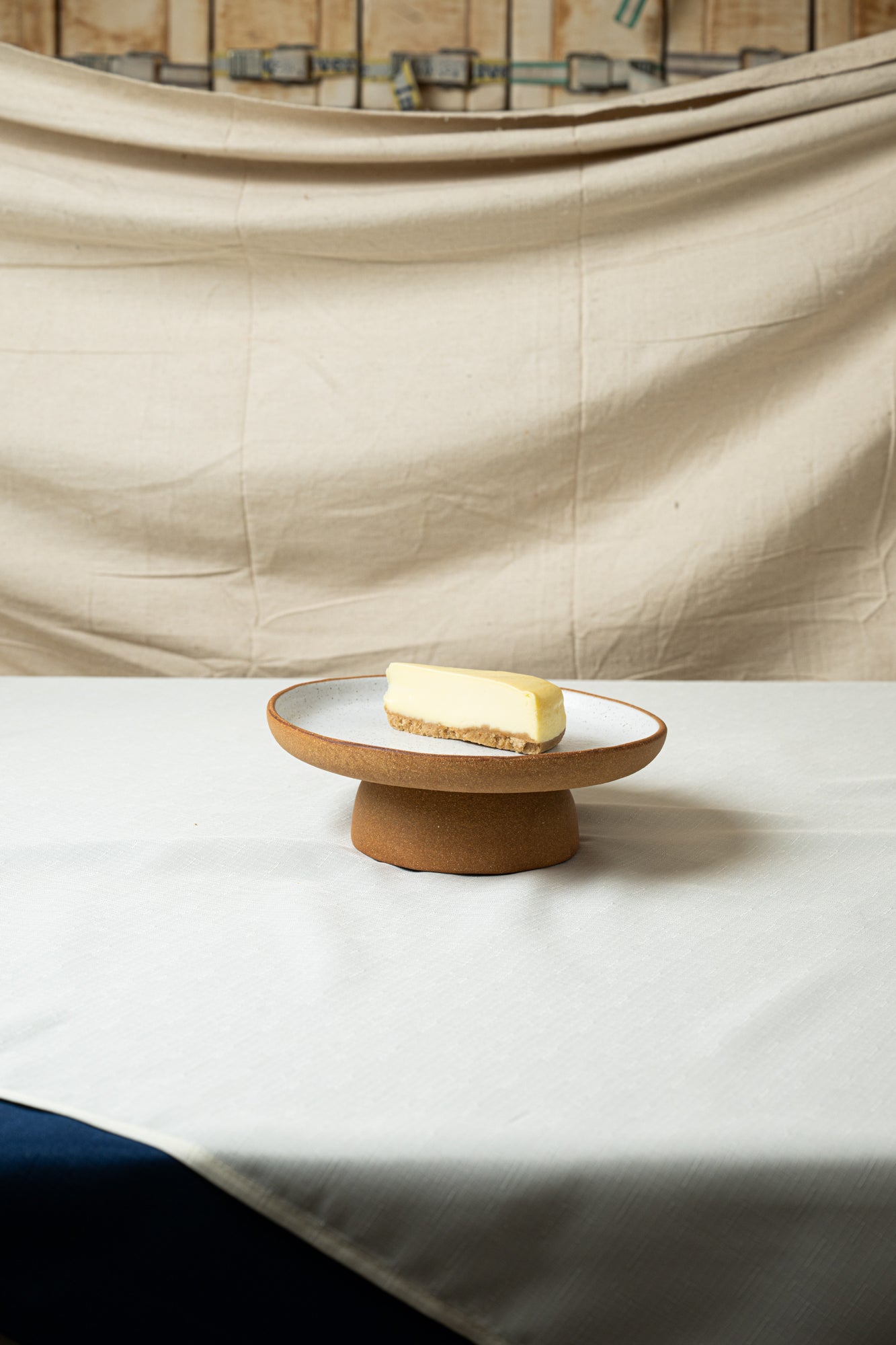 Handmade with precision and balance, our ceramic cake stand brings elegance and elevation to any presentation. Ideal for cakes, tarts, or savory centerpieces. Made to order in our signature Quail Egg glaze with our Natural "House Red" Clay.