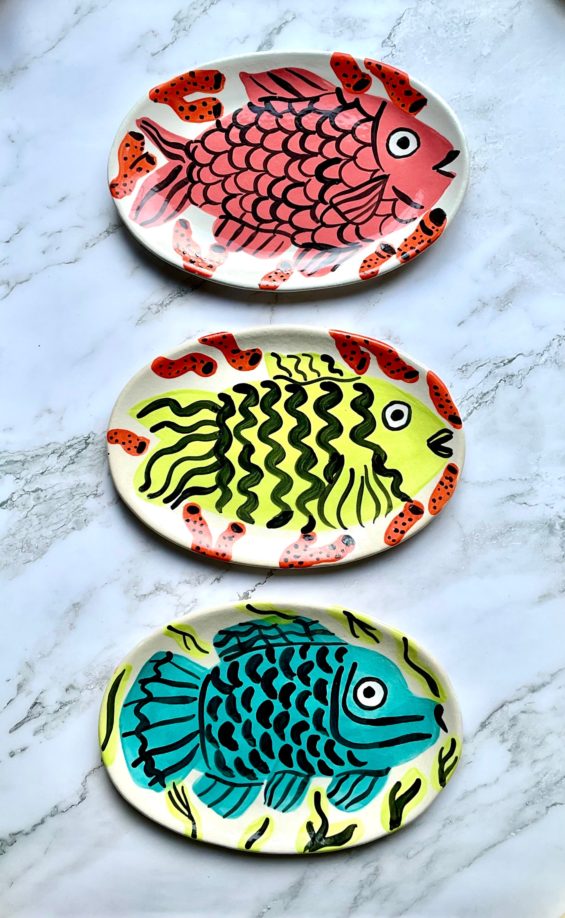 Each ceramic stoneware platter is handcrafted with undulating rims that add a touch of artistry to your table setting. Meticulously hand-painted by Jordan herself, these platters are as functional as they are beautiful—perfect for the home chef or host with an eye for good taste. These platters can transition from table centerpiece to wall art with the included hanging hardware.
