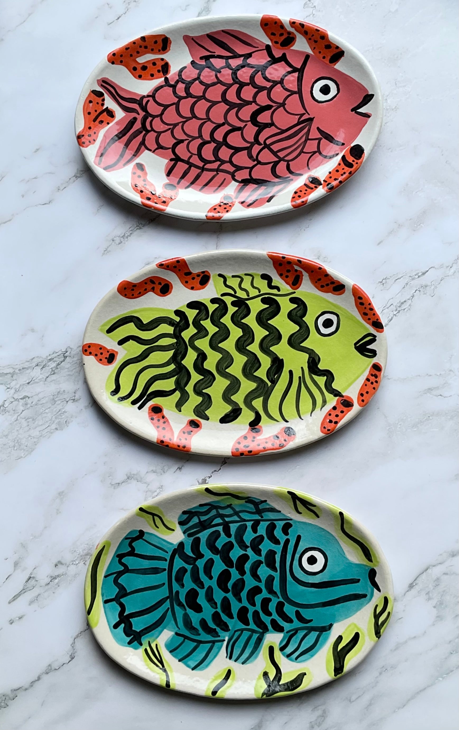 Each ceramic stoneware platter is handcrafted with undulating rims that add a touch of artistry to your table setting. Meticulously hand-painted by Jordan herself, these platters are as functional as they are beautiful—perfect for the home chef or host with an eye for good taste. These platters can transition from table centerpiece to wall art with the included hanging hardware.