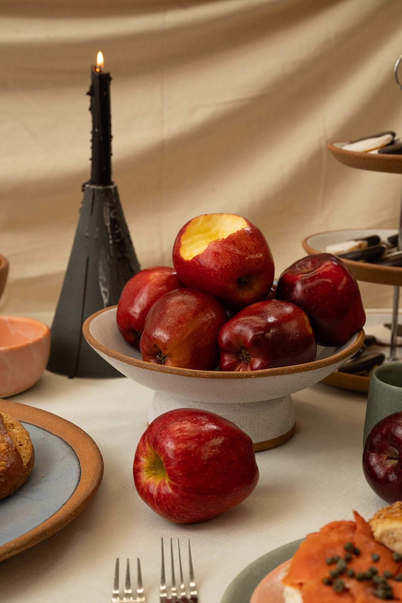 Handmade with precision and balance, our ceramic Fruit Stand brings elegance and elevation to any presentation. Made to order in our signature Quail Egg glaze with our Natural "House Red" Clay.