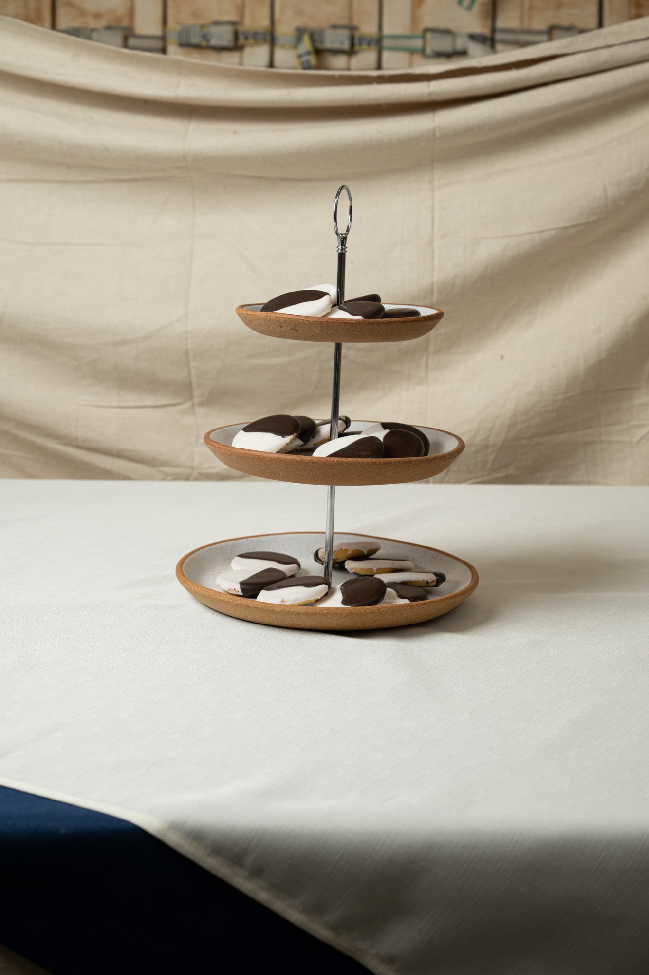 Our tiered servers started as a playful studio experiment—now they’re the centerpiece your table didn’t know it needed. Each stand is thrown and glazed in Brooklyn, then assembled to order in either two or three tiers. Perfect for oysters, pastries, bagels, or whatever else your inner host dreams up.
